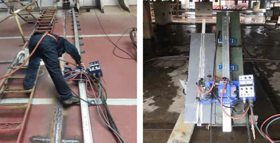 該項(xiàng)焊接工藝的提出,是基于實(shí)現(xiàn)85K散貨船斜底板總組搭載45°對(duì)接焊縫自動(dòng)化焊接的目標(biāo),三部技術(shù)工法部焊接技術(shù)室與搭載部支持作業(yè)區(qū)開展了技術(shù)研究和推廣應(yīng)用攻關(guān)。在此次攻關(guān)過程中,充分利用了兩個(gè)部門人員的專業(yè)優(yōu)勢(shì),從技術(shù)可行性評(píng)估到模擬試驗(yàn),無論是理論上還是生產(chǎn)實(shí)際應(yīng)用上都進(jìn)行了充分的考量,為焊接質(zhì)量和可操作性創(chuàng)造了充分的可行條件。
