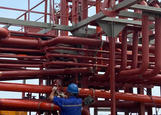 由于國外疫情影響,F(xiàn)ramo液壓管供應(yīng)滯后,原計劃45天的安裝周期無法滿足系泊實驗需求,為了優(yōu)質(zhì)高效完成Framo液壓管安裝及超高壓密試工作,船舶總裝部成立了專項攻關(guān)小組,研究學(xué)習(xí)其他船廠建造方法,不斷優(yōu)化施工流程。