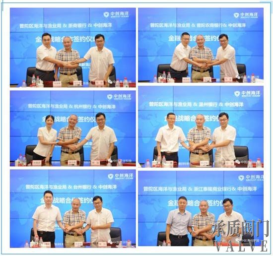 六家金融機(jī)構(gòu)代表,在舟山市普陀區(qū)海洋與漁業(yè)局黨委副書記張立德見證下,與中創(chuàng)海洋科技股份有限公司等三方分別簽署了《關(guān)于支持國家新材料漁船產(chǎn)業(yè)發(fā)展的金融戰(zhàn)略合作協(xié)議》。